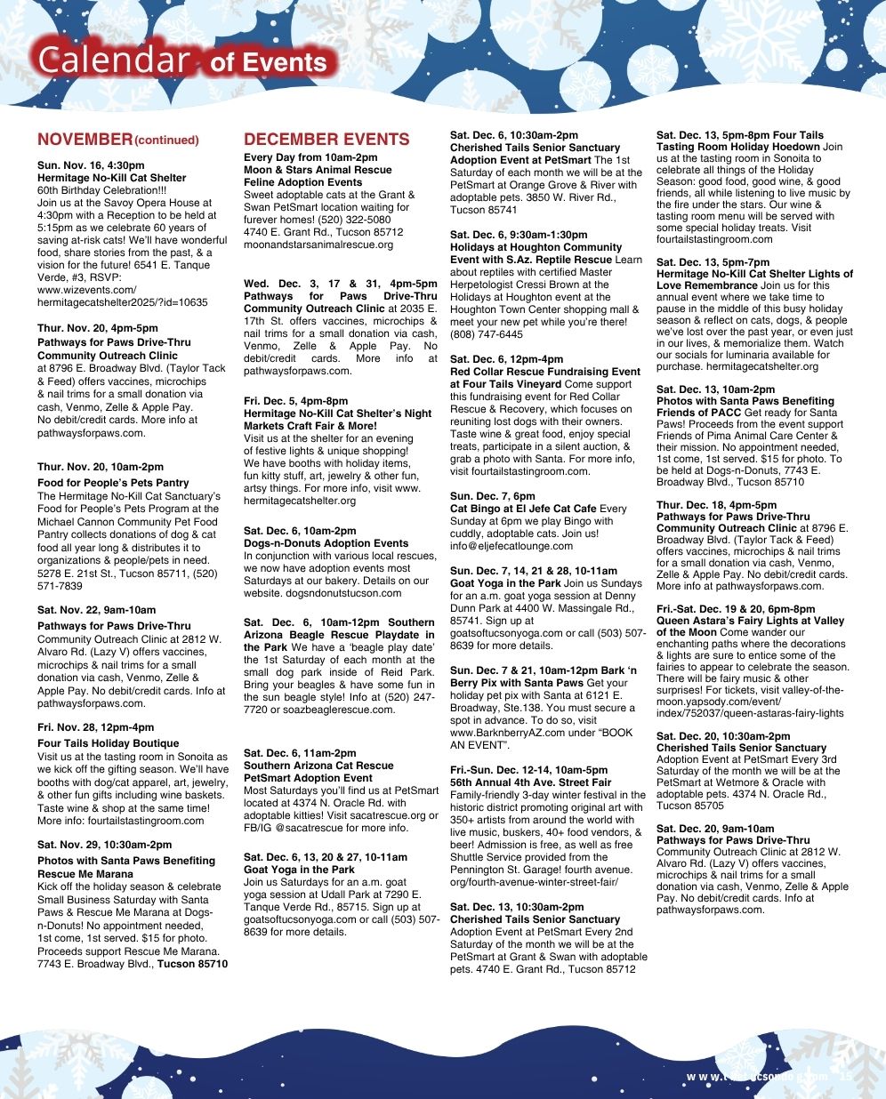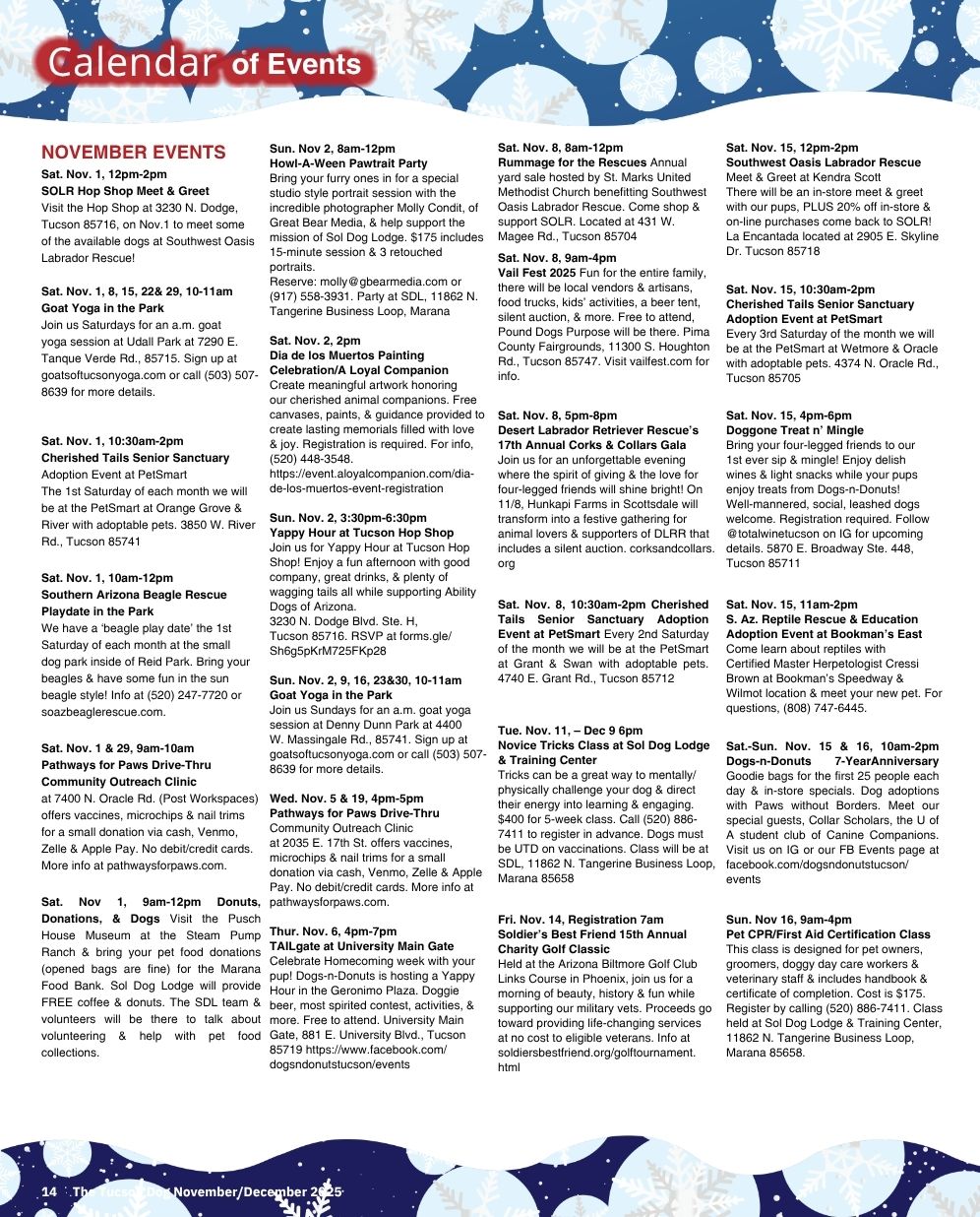 Story by Bonnie Craig Happy fall, Tucson dogs! The leaves may not get colorful in our neck of the woods until December, but it sure must be nice to have cool nights and mornings to frolic and fetch, free from those embarrassing booties the humans make you wear all...